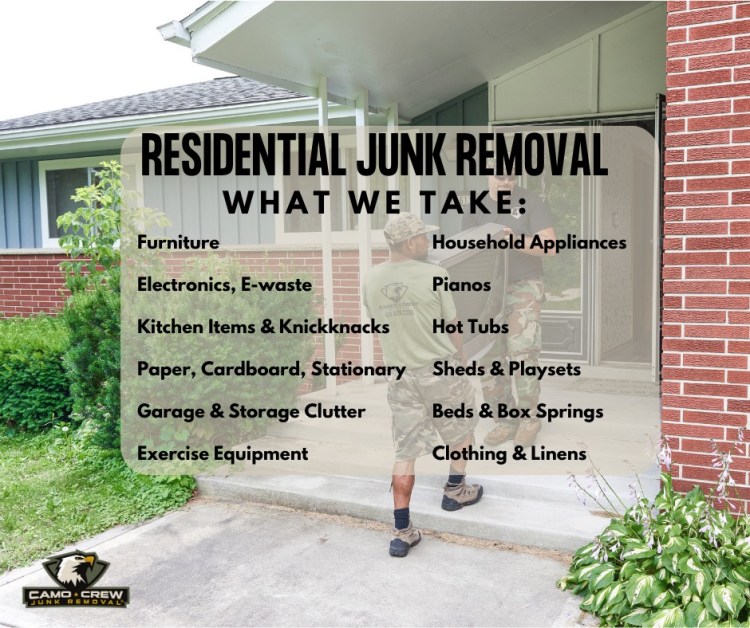 Camo Crew is a local, veteran-owned team of junk removal professionals, dedicated to donating, reusing, repurposing and recycling as much material as possible.